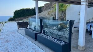 Vilasının Teras – Verandasına Müşteri talebi doğrultusunda istediği şekilde bas-aç rüzgar kırıcı ve saksılı tekerli versiyonumuz ile tasarladık, ürettik ve uyguladık.