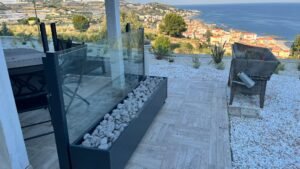 İtalya Saksılı Rüzgar Kırıcı Cam Sistemİtalya Villa Veranda Rüzgar Kırıcı Camİtalya Rüzgar Kırıcı Cam Sistemler