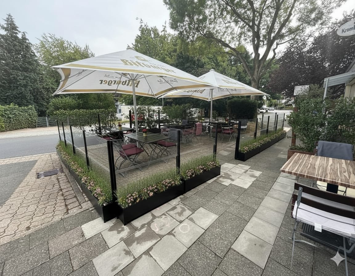 saksılı tekerli rüzgar kesici restaurant